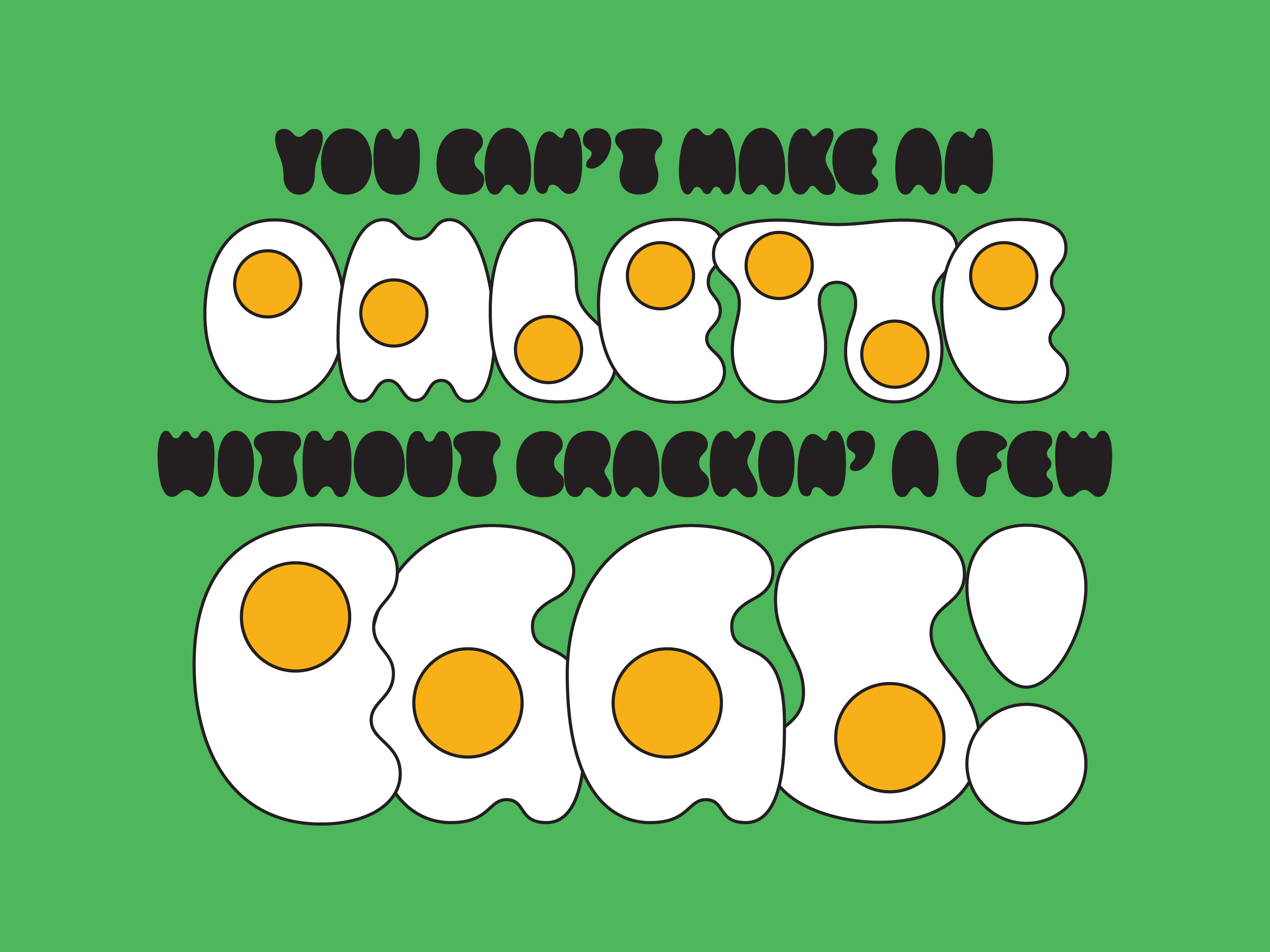 Regular Regular RegularYolker began in 2021 as a part of my 52 Fonts Project. It has become one of my favorites and is lovingly referred to as "egg font." This typeface is designed to look like eggs just dropped into a pan. Each letter is meant to feel like it approximates the same volume as the average egg. Yolker forgos the usual straight lines, counters, and sharp corners which causes it to playfully skirt the limits of legibility.